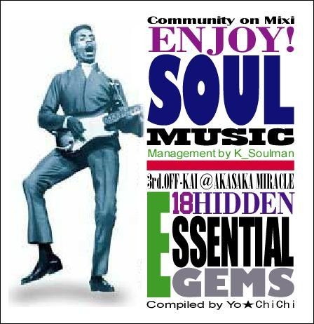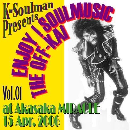 いよいよ来週に迫ってまいりました。っつうか、一週間ないっつうの 今日現在、Enjoy! Soul Music コミュのメンバーは1454名、凄いな で、2008年4月以来、約1年半振りの第5回オフ会です 第5回は、今まで同様に川畑氏のご好意で9月の大型連休最終日に赤坂ミラクルをオープンして頂き、Enjoy! Soul Music 貸切りで行います。川畑さん、感謝 開催場所:赤坂ミラクル http://www.spy-lo.net/miracle/ 開催日:2009年9月23日(水)秋分の日 タイム・スケジュール 19:00〜21:00(2時