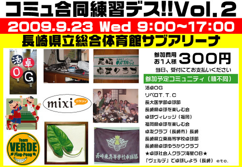 どうも、毎度お騒がせします。LEOデス(*Θ_Θ*)V 7月あたりからの妄想が膨らみ、とりあえず場所は押さえちゃいました 県立サブアリーナを朝から夕方マデ8時間!!体力の続く限り 何をやるかって? それは、えっと…練習デスよ 『れ・ん・しゅ・う』 各mixiコミュに参加されている方々を対象とした、『合同練習』です。 普段なかなか練