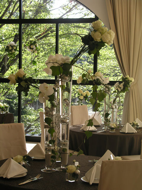 ウェディング パーティ花装飾です。 渋谷・フランス料理の鉄人 坂井先生のレストラン ラ・ロシェルで行います。 今回のテーマは会場にふさわしい ラグジュアリーウェディング 会場を参加者全員で装飾していきます。 年1回のウェディング装飾レッスンとなります。定員15名ですのでお早めにお申し込みください。 場所:ラ・ロシェル 渋谷本店 渋谷区渋谷2-15-1 渋谷クロスタワー32階<BR> 日時:2009年9月28日 月曜日 pm13時〜17時 集合12時30分 受講料:一般 花代込 30000円 お問合せ・お