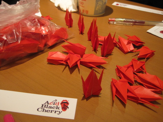 【京都公演(10/30)で千羽鶴を…】企画者のminimumと申します 前回こちらで募集させて頂き、昨日参加していただいた方と一緒に100羽、 ‘yasuさん、Acid Black Cherryメンバーの為に’鶴を折ることができました。 本当にありがとうございました ですがまだ、鶴は千羽に達していません 「参加したいけど、その日は難しいです…」 と言った方もたくさんおられましたので、 私の都合で申し訳ございませんが、急きょ2回目!!を、平日に開催したいと思います。 【更新:9月27日開催場所の変更】 日程、