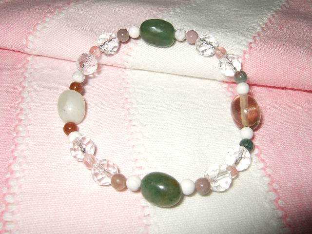 ハンドメイド・パワーストーンブレス、4回目のイベントになります。 今回は欲張って色々な石を集め、球でない石も入れてみました。 そのため価格が少しUPしています。申し訳ありません。 すべてオリジナルデザインです。 もし気に入っていただけて、お手元に置いていただけたら嬉しいです。 よろしくお願いします。 今回使用の石と効果です。 ●スモーキークオーツ(10mm64面カット):心と身体の不調を癒す ●ローズクォーツ(8mm):あらゆる愛・恋愛の石、穏やかで優しい気持ちに ●水晶(8?64面カット):浄化と調和