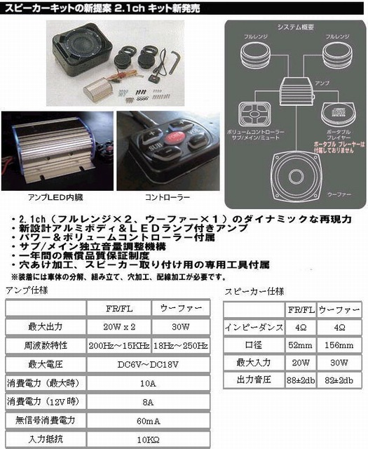 ・パーツの名称: 2.1chスピーカーキット(フルレンジ&ウーファー) 参考サイト→http://item.rakuten.co.jp/mg-market/666628 (ボルト・工具類は付属しません。1枚目の写真に写っている物のみです) ・パーツのメーカー: DUGOUT ・もともと付けていた車両 : フォルツァ(MF08) ・使用期間/距離など: 新品購入後2ヶ月ほどです。 ・状態(キズや不具合がある場合は詳しく) 外観の小傷程度はありますが、使用に支障をきたす不具合などはありません。 ・サイズ(おおよその採寸です) スピーカー→直径8.5cm ウーファー