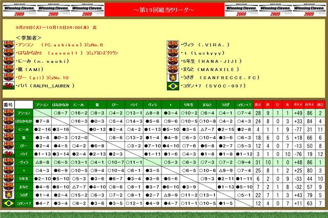 最初に!今回は今までの大会と形式や結果報告方法が異なりますので、 必ず大会進行方法を理解されてから参加表明お願いします。 参加の際、使用チーム、ウイイレ専用IDの記載がない場合、 参加と見なしません。 チームの変更も認めません。変更する場合は、一旦キャンセルし、再度参加の扱いに なりますので、IDと使用チームを再度書き直してください。 また、普段出れない人を優先したいので、第20回2009ファイナルカップ との重複参加はご遠慮願います。 アシコンは管理の為参加いたします。 重要事項は