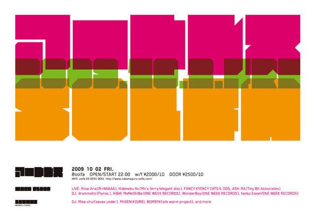 DJには、日本のキング・オブ・ロック=”大貫憲章さん”をはじめ、ソノラ日本語ロックの総番長”ヒゴビシャス”、独自の感覚で東京モッズシーンを牽引する”ブルードレス”、日本の音楽シーンを知り尽くす音楽業界の要人”IIDA”、ソノラ代表で様々なジャンルを肌で感じ翻訳して産まれた"INNER CITY JAM ORCHESTRA"のプロデュースで世にヒット作を送り続けている”牧野