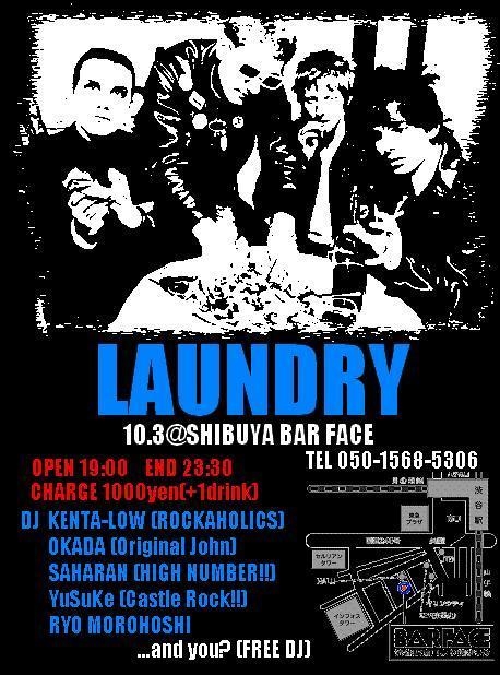 板金さん、告知失礼します。 前回が結構好評だったんで勢いに乗って二回目を開催します! 一応名前的なものも「LAUNDRY」に決まりました。 隔月第一土曜日に定期開催できたらいいななんて今のところは思ってます。 まあまずは10月3日(土)! 今回もFREE DJ募集するんで「DJやってみたいなー」って方、どんどん名乗りあげてください! □■□■□■□■□■□■□■□■□■□■□■□■□■□■□■□■ 【LAUNDRY】 DATE:10/3(sat) OPEN:19:00 CLOSE:23:30 CHARGE:1000yen(+1drink) 【DJ】 KENTA-LOW / OK
