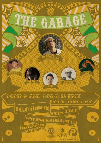 管理人様失礼いたします!!! 本日10月5日月曜日は平日NO.1パーティー「THE GARAGE」です!!! 毎回600-700人のお客さんでにぎわっております!!!! 平日では異例のVUENOS&ASIAP&NEOがフリー連動しております!!!! VUENOSではメインストリーム、PではLIVE、NEOは90S中心のCLASSICなど各フロアで楽しめます!!! ぜひぜひお越しください!!! THE GARAGE DATE: Monday 10月5日 TIME: 23:00 ~ LATE OPEN:11PM PRICE: Entrance¥2500with1DRINK withflyer¥2000with1DRINK GENRE: Hip Hop/R&B/REGGAE ARTISTS: Celory