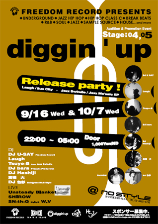 本日は、diggin' up @ 渋谷 NO STYLEです。