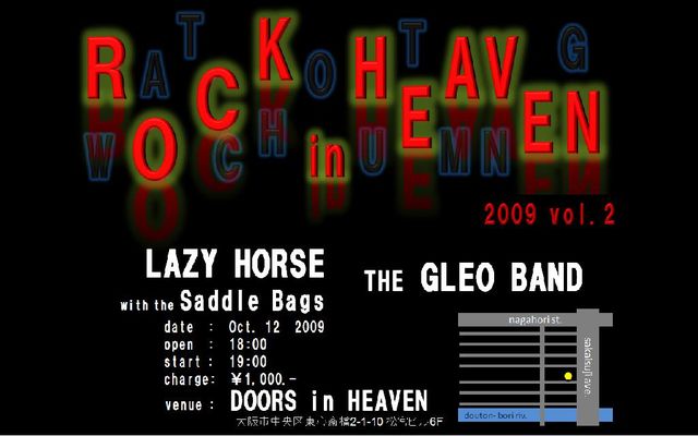 元ラリーパパ・カーネギーママのキム・ガンホさんが“最年少”ということでバンマス兼パシリとなっているTHE GLEO BANDとの競演です。 performers: LAZY HORSE with the Saddle Bags THE GLEO BAND charge:\1,000.-