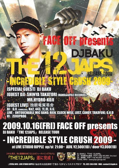 毎月第3金曜日にLIVE STUDIO RIPPLE行われているHIPHOPイベント『FACE OFF』で仙台編をやります!