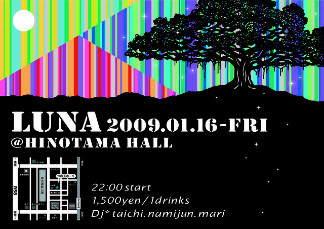Luna 2009/1/16(FRI) @火の玉ホール 22:00スタート ■■■■■■■■■ 携帯電話からアクセスし入場の際フライヤー画像をご呈示していただければ 入場無料となります。 ■■■■■■■■■ ソウルフルで甘い歌物ディープハウスから、エレクトロ・スペーシー系テックサウンドまで、過去から現在、そして未来まで ハウスミュージックのポジティブなヴァイブを感じてください