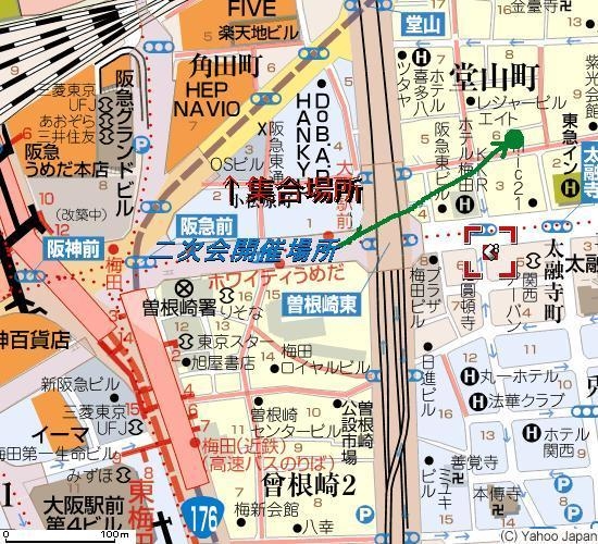 詳細いろいろ決めましたしばじゅんオフ@大阪 今回は梅田での開催となります 日程 10月17日 土曜日 午後1時〜 集合場所 餃子スタジアム前(わかりにくいかな?ww) 1次会 カラオケ 予算 1100円 カラオケ804 泉の広場店(今回は大部屋ではなく小部屋3つで) http://r.gnavi.co.jp/k219101/ 午後1時〜6時 (11時から予約とってますからウォーミングUPしたい方は連絡ください☆) 2次会 飲み会 予算 3300円(飲み放題付) 居酒家 小間蔵 梅田阪急東通り店 http://www.hotpepper.jp/strJ000662
