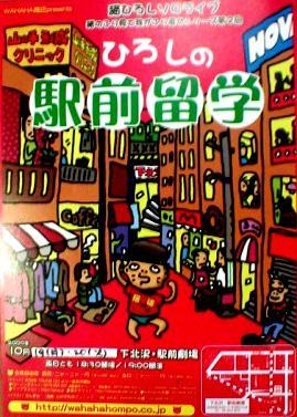 WAHAHA商店presents 【猫ひろし単独ライブ】 猫のふり見て我がふり直せシリーズ第二回 「ひろしの駅前留学」 ■2009年10月19日(月)&20日(火) 開場18:30 / 開演19:00 ■下北沢・駅前劇場 東京都世田谷区北沢2-11-8TAROビル3F TEL:03-3414-0019 ■前売 2,200円(全席指定・税込) 当日 2,800円(全席指定・税込) ■チケット発売中 イープラス(e+):http://eplus.jp ローソンチケット:0570-000-407/0570-084-003(Lコード:)/ http://l-tike.com 楽天チケット:http://ticket.rakuten.co.jp WAHAHA