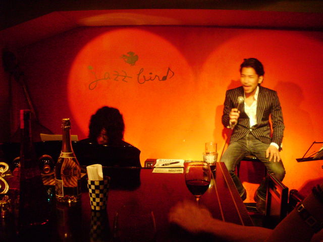 毎月恒例のジャズバードでのライブ! 本日も竜&くっきーが巻き起こす奇想天外なDUO!(笑) 駅から近いし、気軽に寄れるし、雰囲気も良い。 竜太郎の歌声がたっぷり〜〜〜店内に充満します♪ 行こう行こう http://www2.ttcn.ne.jp/jazzbird/