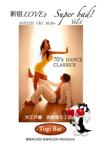 新宿LOVE♪の宣伝させて貰います 皆さん〜遊びに来て下さいね。 ここでリクエストも受付ますのでガンガンどーぞ 参加メンバーにポチットナもガンガンしてくれたら嬉しいです。 よろしくお願いします 【FUNKY MUSIC、DANCE CLASSICS 】イベント御案内 新宿LOVE♪/Super bad! Vol.6 新宿ケントスファンの方々なら、お馴染み、又、 リアル タイムを知らない若い方々でも、曲名、 グループ名は 知らずとも、なんとなく聴き覚えある 楽曲の数々。 赤坂、六本木は勿論!、新宿はゲット、トレビ、