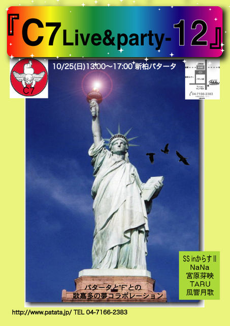 "パタータ"と"F"との 歌嘉多の夢コラボレーション *12:30 開場, 13:00〜 開演 *1,500円(食事付)ドリンク別 *1,000円(お子ちゃま料金) 出演者 SS inからす-2 NANA 宮原芽映(友情出演) TARU 風響月歌 たまにはJBLでも使いましょうか。 【ご注意】 開場時間がいつもより早くなりました。
