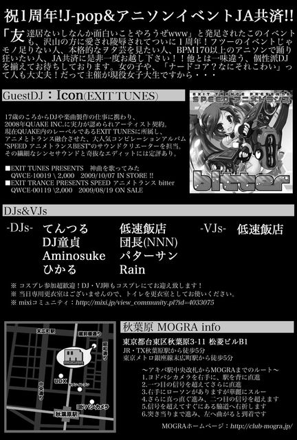 ■祝1周年!J-pop&アニソンイベントJA共済!!■ 「友達居ないしなんか面白いことやろうぜwww」と発足されたこのイベントも、沢山の方に愛され陵辱されてついに1周年!フツーのイベントじゃモノ足りない人、本格的なヲタ芸を見たい人、BPM170以上のアニソンで踊り狂いたい人、JA共済に是非一度お越し下さい!!他とは一味違う、個性派DJを揃えてお待ちしております。女の子や、「ナードコア?なにそれこわい」って人も大丈夫!だって主催が現役女子大生ですから・・・ ■コミュニティ■ http://mixi.jp/view_community.pl?id=4033075 ■JA共