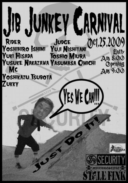 皆さん!お待たせしました!今年もまたstale FinkはJIBの大会を開催します!! 今回の大会はまるでSK8PARK!!FLAT BANKを持ち込み自由にアイテムを選んで頂き挑んでもらいます! この大会はStale Finkオリジナルブランド「SECURITY」のライダー選考も兼ねています! ライダーを目指してる方もそうでない方も、楽しく大会にエントリーして下さい♪ ■ 開催日時 ■ 10/25(日)8:00〜12:00 START(8:00〜8:40受付) ■ 参加費 ■ 3,500円(当日 4,000円) ■ スケジュール ■ 8:00〜8:40 受付(2F) 9:00〜9
