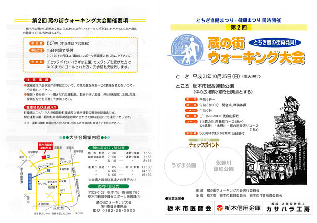 10月25日(日)に栃木市内で協働祭りが開催されますが、その中の企画でウォーキング大会を企画しているものです。 当日、完歩した方に、ゴールした時の写真を撮影して配布するのですが、その撮影とプリントアウトをするボランティアの方を募集しています。 定員は三名で、多少のデジカメと印刷の知識があれば構いませんので、いろいろな人に栃木市を歩いてもらって栃木市のよさを知ってもらう機会に協力してもらえる方、ご連絡メッセージお待ちしています。