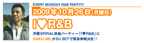 管理人様、告知失礼します。 不適切ならばお手数ですが削除願います。 12月の名古屋ワンマンのプロモーションとしてワンマンの会場であるSPIRALにてGAKUさんがDJプレイを行います。 平日ですがGAKUさんの出番は23時半〜0時半の予定となっておりますのでご都合の付く方は是非遊びに来てください。 前売チケットご希望の方はメッセ頂ければご用意させて頂きます。 以下、イベント概要です。 IR&B@SPIRAL 2009年10月26日(月)20:00〜 前売: 1,000yen-1D / 当日: 1,500yen-1D 【GUEST DJ】 GAKU-MC 【DJ】 DJ MURAKAMIGO