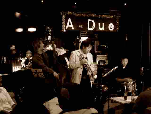 来る10月27日の火曜日、“くろ兵衛”階上“ピアノパブ酔酔”にて、 久力譲二(b)とCHIHIRO(p)の“A・Due(アデュエ)”に、 サポート・メンバー加来亨(d)、ゲストに「魂のトランペッター」臼澤茂(tp)を迎え、 ジャズライブを開催します。 演奏は、20:30頃開始予定です。 27回目を迎える今回のライブは、 『枯葉』や『オータム・イン・ニューヨーク』など、 秋にちなんだ名曲を中心にお届けします。 【料金】 ◎ ミュージックチャ−ジ2,000円(飲食別) ◎ プラス3,000円で飲み放題も有ります ◎ 2ステージ同料金、入れ