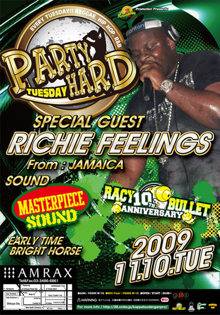 東京REGGAEの最前線! OPEN 0:00〜 ADM ¥2000/1D W.F ¥1500/1D R20 要ID SANDAY MONDAY PARTY HARD TUESDAY♪ <Myspace URL> http://www.myspace.com/pzeee 10月のPARTY HARD TUESDAY 10/27 -SOUND- INTERCEPTER UNITY SOUND fr. YOKOHAMA BRIGHT HORSE RACY BULLET -DANCER- CHACHA fr. Chandelella MARIE fr. Chandelella NACO fr. Chandelella MASAMI fr. DOLCE PINKY PINKY fr. DOLCE PINKY EARLY TIME DJ 1 PEACE [amate-raxi(アマテラグジイ)] ・ADDRESS:150-0002 東京都渋谷区渋谷3-26-16 ht