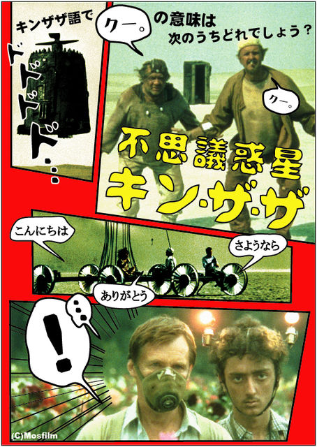 __________________________________________ 2009年バンタン映画映像学院配給宣伝・プロデュース専攻科主催 「不思議惑星・キン・ザ・ザ」上映会 1989年に池袋にて行われていた「ソビエトSF映画祭」の中の1本に選ばれ、観にきた人を魅了し、旧ソ連では1570万人を熱狂させた脱力系SFコメディー! 日時:10月27日(火)、31日(土) (18時00時開場〜18時15分開演〜20時30分閉演)上映時間135分 定員数80名 上映場所:東京ウィメンズプラザ 〒150-0001 東京都渋谷区神宮前5-53-67(アクセス→http://www.tokyo-