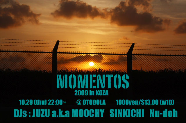 管理人様、PARTY告知失礼します。 09.10.29(thu) △▼△ MOMENTOS 2009 in KOZA OKINAWA ▼△▼ @OTOBOLA http://otobola.ti-da.net/ http://mixi.jp/view_community.pl?id=3399147 GUEST DJ: JUZU a.k.a MOOCHY http://www.nxs.jp/ http://www.myspace.com/juzuakamoochy http://mixi.jp/view_community.pl?id=103807 JUZU a.k.a MOOCHYs RE-MOMENTOS INTRODUCTION↓ mo DJs: SINKICHI(SUNCONSCIOUS) http://www.myspace.com/djsinkichi http://mixi.jp/view_community.pl?id=981610 Nu-doh(SMECARY) http://w