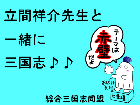三国志界の権威! あの立間祥介先生と一緒に三国志を学びましょう〜♪♪ というわけで! 立間祥介先生を講師にお招きした三国志勉強会の第4回目です!! 「前回は参加出来なかったよ〜・・・」 という方も、ご都合が合えばぜひぜひご参加くださいね♪ 初参加さん大歓迎です♪♪ ●立間祥介先生 慶應義塾大学名誉教授 三国志演義の完訳本を出され、のちにNHK人形劇『三国志』の原作を担当される。 正史・演義に関して多数の著書がおありで、三国志研究の第一人者でいらっしゃいます。 ※写真左が立間先生 右が運営の美恵
