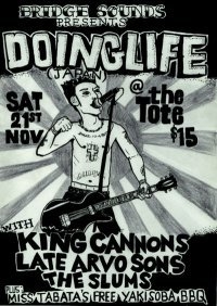 11月21日(土)にBridge Sounds record 主催のPUNK ROCK SHOWをThe Tote Hotel, Collingwoodにて開催いたします。今回はスペシャルゲストとして、1年ぶりに東京よりDOINGLIFEをスペシャルゲストとして迎えてのビッグイベントです。