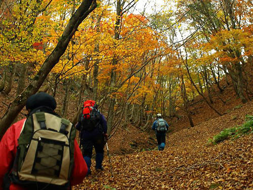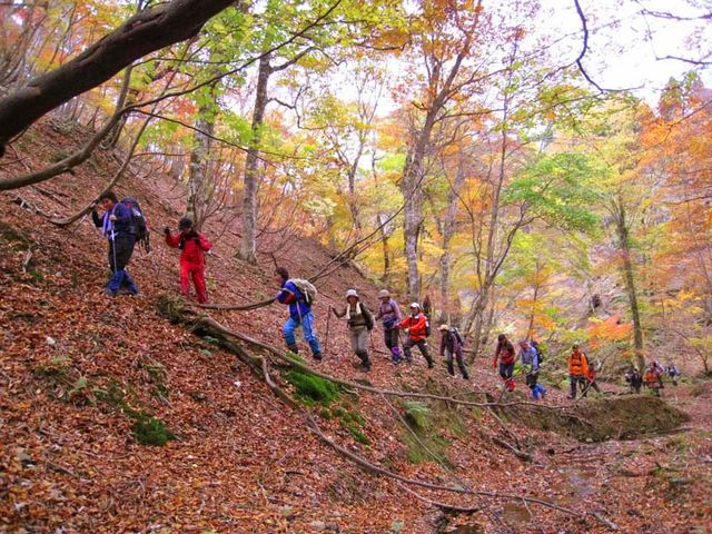 定員につき、募集はすでに締め切りました。 ▲写真は2008年11月9日の芦生イベント(日帰り)。左は野田畑峠付近、中と右は枕谷源頭付近(2枚目の写真はmaririnさんからお借りしました)。今回のイベントでも歩くところです。 【概略】 京都の芦生原生林が黄葉で見頃になると思われる時期に合わせてテント泊で歩きます。道のないところを地図とコンパスを頼りに森の奥深くに入ります。ブナの巨木の尾根やトチ、カツラ、ミズナラ、カエデが色とりどりに輝く谷、ガイドツアーでは行けないルートを歩きませんか? 【参加資格】 下記の内容を守