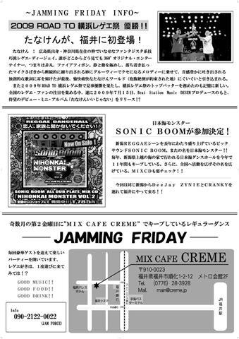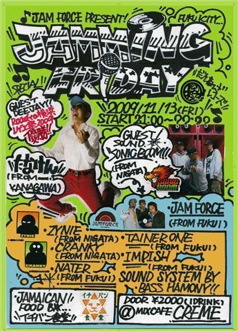 2ヶ月に一回第2金曜日恒例のオモローなREGGAEのパーティJAMMINGFRIDAY。