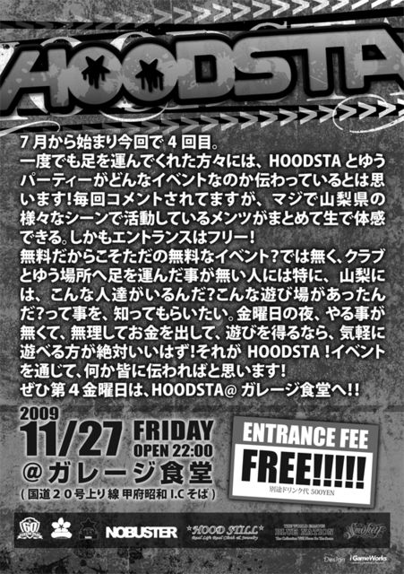 毎月第4土曜日、CLUB GOAにて行っているHipHopイベント「NO BUSTER」