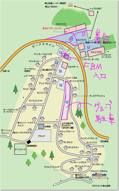 とりいそぎ、台数把握します。 プルリエルのグループ駐車枠希望の方は、お申し出ください^^。 http://www.kurumayama.com/fbm/ ※今年の現場の仕切りは、だかちゃんさんとミゾッチさんにお願いしています。 <業務連絡> 11月1日(日)参加者さんへのパーキングチケット(¥1,000−)の受け渡し方法 スカイパークホテル宿泊、 又は提携ホテル宿泊者意外の方へのご連絡です。 今年は、入口手前にあります車山ロープウェイ駐車場に、 下記時間にお集り下さいませ。 ?7:00〜7:30ごろ ?8:00〜8:30ごろ ?9:0