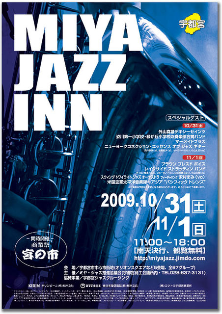 宇都宮の歴史ある音楽イベント、 【MIYA JAZZ INN 2009】 今年もごじゃる!はステージのトリとして 出演いたします。 ぜひご来場下さい。 宇都宮市 まちかど広場ステージ 15:30〜 入場無料 公式WEB http://miyajazz.jimdo.com/