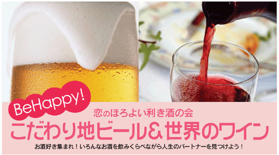 28歳以上「お酒好き独身男女」集まれ! いろんなお酒を飲み比べながら人生のパートナーを見つけよう! 11月8日(日)・11月23日(祝・月) 2回連続企画 恋のほろよい利き酒の会「こだわり地ビール&世界のワイン」 美容とと健康が気になる人、みんなでワイワイ楽しく飲むのが好きな人、 いつか夫婦でグラスを傾けたい人、 地ビールとワインの専門家に教えてもらいながら いろんな地ビールやワインを飲みくらべてみませんか。 ☆☆☆ 地ビールに恋する会 ☆☆☆ おつまみ付 【日時】11月8日(日)16:00〜18:00(受付15:30〜