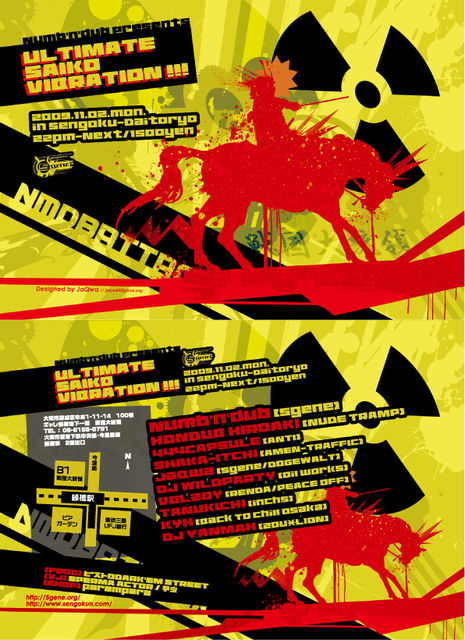 "眠らぬ街OSAKA/TOKYO両アングラが放つ、現在の現場をその腕でうならせる 才能の塊どもが、大阪ニューゲットーエリア緑橋は戦国大統領に一挙集結!!!!!! KAIKOO,ZETTAI-MU,MIDI_sai,Back To Chillなど時代の先駆者が 掲げる超大パーティへの出演もチラホラ、なんしか只今、大阪/東京の一番新しい世代が 作り上げる最強にHOTで新しい音楽を、なんと衝撃プライスの1000円+1Dで体感できる 出血Mothafxxkin'DIEサービススススススス企画なのだだだだ!!!!!!!!!!!!!!!!!!!!!! P.Aサウンドシステムも申し分なし全てを再現する美しい爆音と重