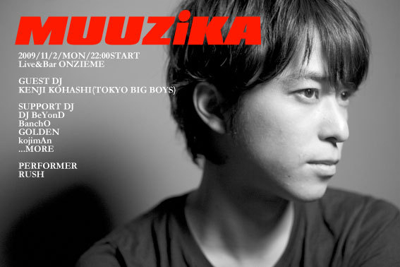 MUUZiKA 日時:11月2日 22時スタート 料金:3000円+1D(500円) クラブ:Onzieme http://www.onzi-eme.com/shop/ MUUZiKA 1996年より東京で産声をあげたパーティー"CELL"が2009年より関西地域を拠点にNEW パーティー"MUUZiKA"をスタート。 エレクトロ&テクノをベースとしたジャンルでクラブピープルから、コアなクラウドまでをうならせる!! 様々なアーティストやモデルも参加し話題を呼び華やかな一夜を演出します!! GUEST DJ KENJI KOHASHI (TOKYO BIG BOYS) DJ BeYonD aka O-MAN [ALKALOID/BeYonD project] GOLDEN
