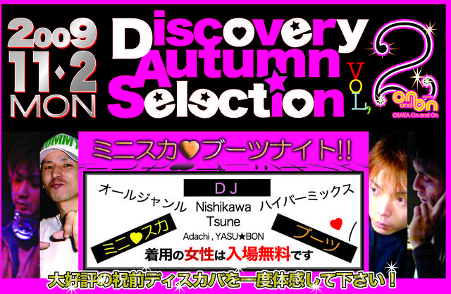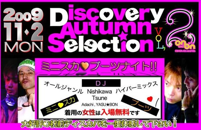 大阪NO.1オールジャンルイベント茶屋町danceteria SAZ●*Eの伝説のイベント「Discovery」がパワーアップして梅田On and Onで復活!!ディスカバGWSP女性限定特典!ミニスカでお越しの女性は入場無料!!!