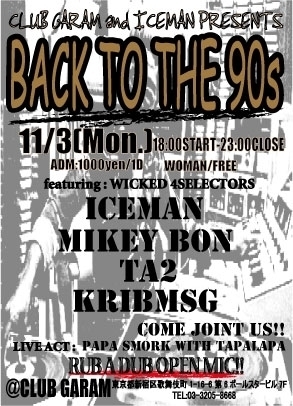 2K9/11/03 (TUE) BACK TO THE ROOTS 90s(1990〜1999年までのヒット曲をPLAY)