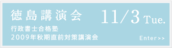第1部 「カリスマ講師が予想する、2009年行政書士本試験大胆予想」 時間:13時30分〜15時 対象:行政書士受験生・行政書士試験に興味のある方 持物:筆記用具と、差し支えなければ六法をお持ちください。 第2部 「半サラ人生、半サラ世帯の勧め!」 〜会社は、もうあなたを守れない、守らない!未曽有の雇用危機から見えてきたもの、給与所得者、給与所得世帯のリスクをヘッジする、行政書士資格を用いた超ローリスク起業法、行政書士資格の驚異的有効活用法〜 時間:15時10分〜16時40分 対象:行政書士試験受験生・行政