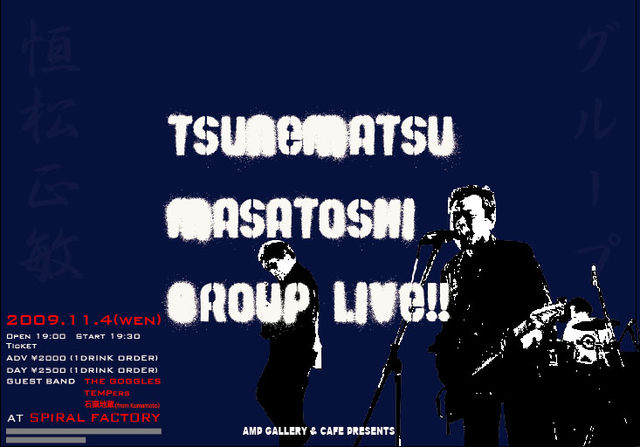 AMP GALLERY & CAFE PRESENTS VOL1 <恒松正敏GROUP LIVE !!> 11月4日(水) スパイラルファクトリー http://www.spiralfactory.com/ <guest band> *THE GOGGLES *TEMPERS *石頭地蔵(from熊本) 19時オープン19時半スタート 前売り 2000円(ドリンク別) 当日 2500円(ドリンク別) 以下バンドプロフィール <恒松正敏GROUP> 今尚現代シーンに軋みを与え続ける稀有なバンド・フリクションにおいて、その 冷徹なまでの鋭利さと不可視的速度を湛えるギタープレイで唯一無二の存在を刻 み込んだ恒松