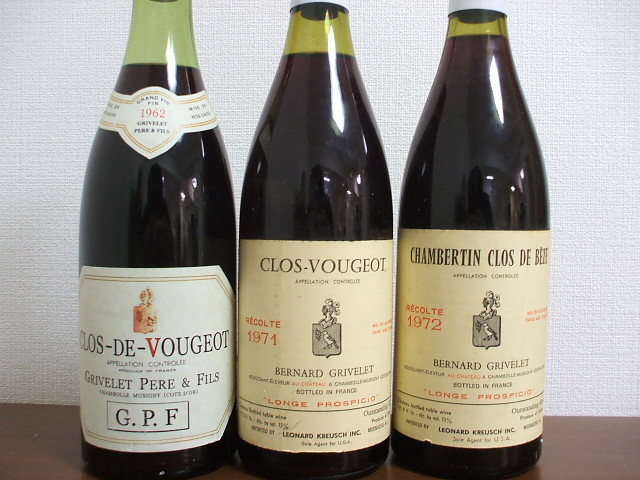 参加者募集です。 また変わったものを手に入れました…。 今は存在しない、幻のドメーヌ・グリヴレのグランクリュ3本です。 ヴィンテージも優良なものばかりです。 Chambertin Clos de Beze / Grivelet 1972 Clos de Vougeot / Grivelet 1971 Clos de Vougeot / Grivelet 1962 グリヴレの古酒を3種を一度に飲む機会はそうないでしょう。 しかも、かなり割安な会費だと思います。 この3本の写真は追々アップします。 ******************************************************* 参加人数:10名(本人含む) 日時:2009/11/7