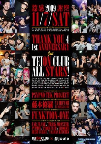 お世話になります。 告知失礼します。 TEION CLUB - THANK YOU 4 ★ 1st ANNIVERSARY - http://www.teionclub.com/ ========================================== 11月7日 (土曜日) 、遂にTEION CLUBが一周年! それを記念してスペシャルパーティ開催決定!! ========================================== ■ INTRODUCTION ■ ------------------------------------------------------------------------------ 国内屈指のイ