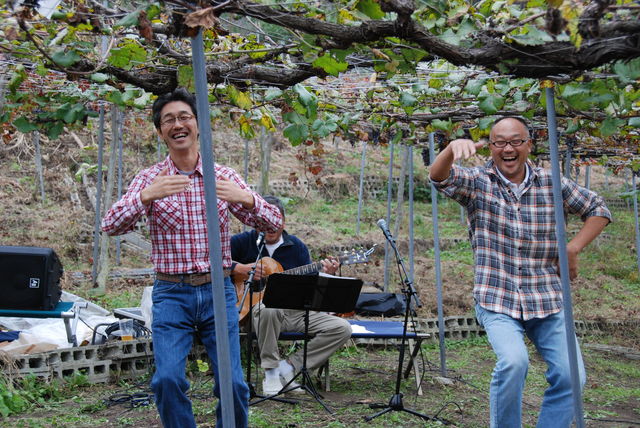 秋のワインカニカピラのお知らせです 集合時間 午前11時 開始時間 11時30分〜3時半まで 集合場所 近鉄南大阪線 上ノ太子駅 午前10時24分発 近鉄南大阪線 大阪阿倍野発準急・橿原神宮前行に乗ると間に合います 橿原神宮前行以外の電車は乗換えが必要です。 会費 5,000円 この畑で収穫された葡萄で絞ったとってもフルーティ−なワインです 赤ワイン、白ワイン飲み放題 マスカットのワイン等、非売品のワインもいっぱい飲めます おいしいバーベキューお釜で炊いたご飯付です