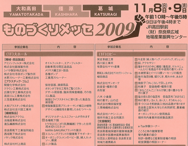 【日程】11月8日(日)・9日(月) 午前10時〜午後5時 9日は午後4時まで 【会場】JR高田駅前 (財)奈良県広域地場産業振興センター