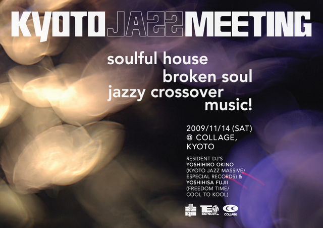 11月のKYOTO JAZZ MEETINGはレジデンツによるロングセットです 今回は特別に、沖野好洋(Kyoto Jazz Massive)による選曲のCDプレゼントがありますっ! 限定数のみの配布になるので、みなさん早くきてね 12月はCOLLAGE&KYOTO JAZZ MEETINGの周年パーティーを開催します! 2ヶ月連続のスペシャル企画! ぜひ遊びに来てくださ〜い 2009.11.14 (Sat) @Collage. Kyoto "KYOTO JAZZ MEETING" Soulful House, Broken Soul, Jazzy Crossover Music! Resident DJ's Yoshihiro Okino (Kyoto Jazz Massive / Esp
