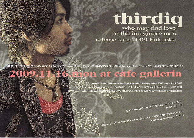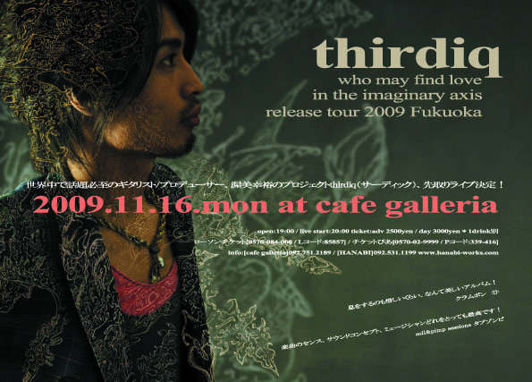 BIRD、沖野修也、テイ・トウワ、椎名順平らのギタリストとして活躍する渥美裕幸のソロユニット、thirdiq(サーディック)。須永辰緒や、ミト(クラムボン)、DJ KAWASAKIら幅広いアーティストから絶大な支持を集めるthirdiq初の福岡公演が開催!