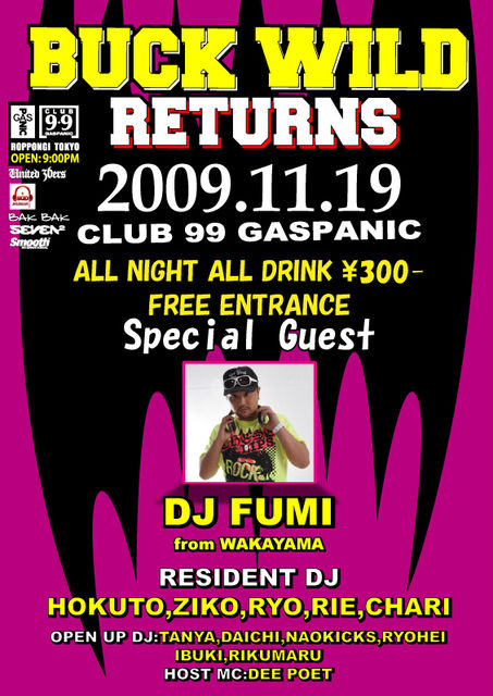 毎週木曜日、六本木の夜を騒がせる、東京NO.1クレージーHIP HOPパーティー「バックワイルド」!!!