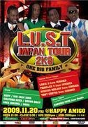 11/20LUST JAPAN TOUR 2K9 関西場所=ローソンチケットLコード59369 全国ローソン各店舗で10/20発売開始! ローソンチケット Lコード59369 〜ONE BIG FAMILY〜 @HAPPY AMIGO -Special Guest Live- LUKIE D THRILLER U SINGING MELODY TONY CURTIS (All From Jamaica) -Guest Sound- BARRIER FREE -Sound- RUDY JAH-MAN KING CULTURE SEED ROCK CHANNEL SOUND BEAT BOSS K-ZONE SOUND SYSTEM ADV:\3000 ADM:\3500 (1d 別途) 21pm-5am -Special Thanks- ROCKERS ISLAND FIVE STAR SUPER STAR RECORDS MACAMOCARI GREEN HOUSE TOTAL HIGH