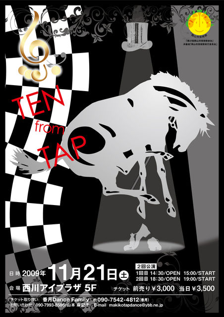 「点 FROM TAP」 11月21日(土) @西川アイプラザ 5Fホール 時間 15時/19時 開場は30分前 チケット 前売り¥3000 当日¥3500 岡山では珍しいタップの舞台!!! この舞台は、中国地方出身のTAP DANCER・そして、中国地方と関わりのあるダンサーが集まり、ダンスとして、音楽として舞台を作り上げていきます!!! ダンサーは、若手実力派、汗と情熱TAPダンサーPORIと、優しげな雰囲気と色気で人気上昇中の森田洋輔、あの有名な心温まる音を奏でる沖縄在住のSAM’そして、広島からMOMOE&A